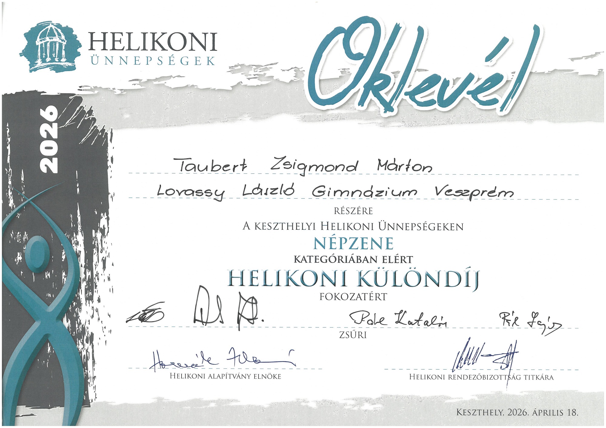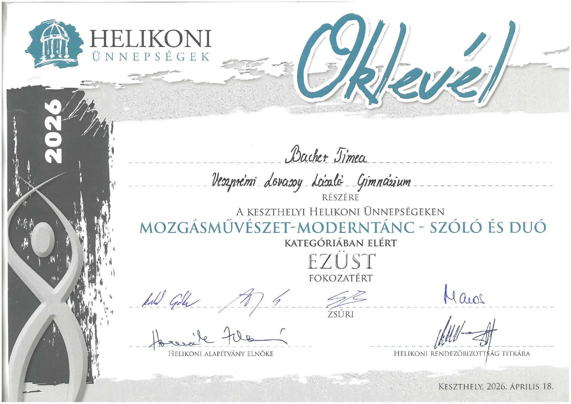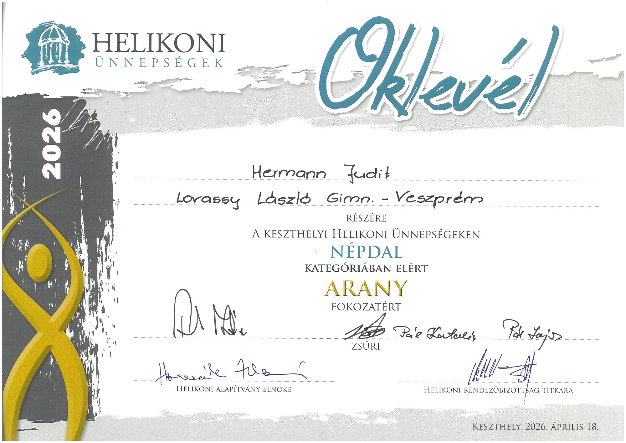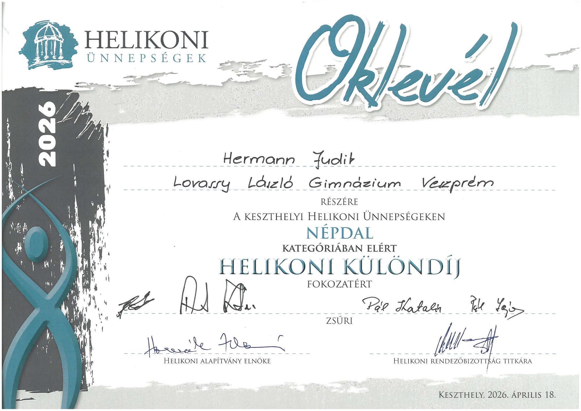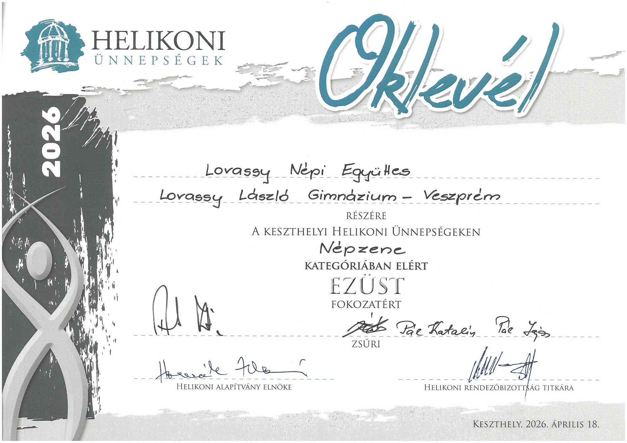 Iskolánk a 2026. évi Helikoni ünnepségeken is 80 fős csapattal vett részt. A Női kar, modern tán csoport és az Néptánc duó kategóriát kivéve minden kategóriában neveztünk, s nagyon szép eredmények születtek.