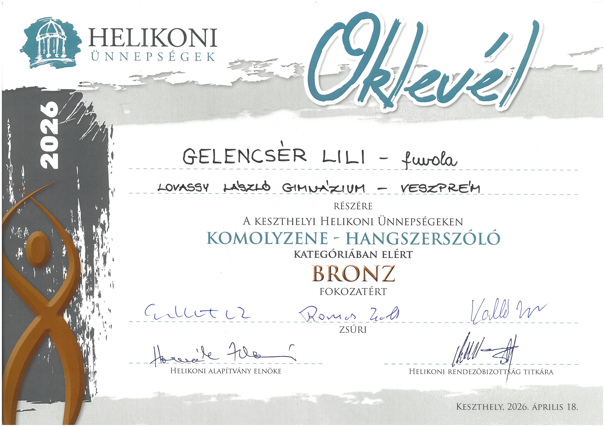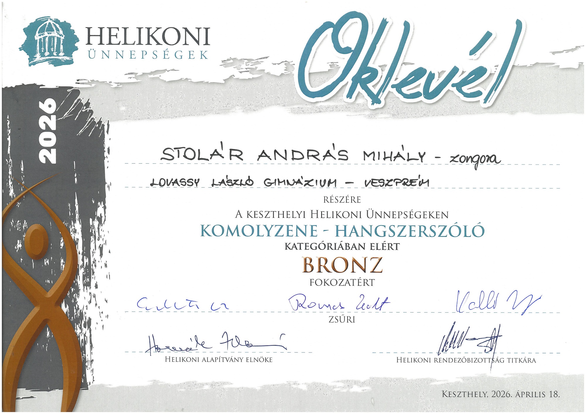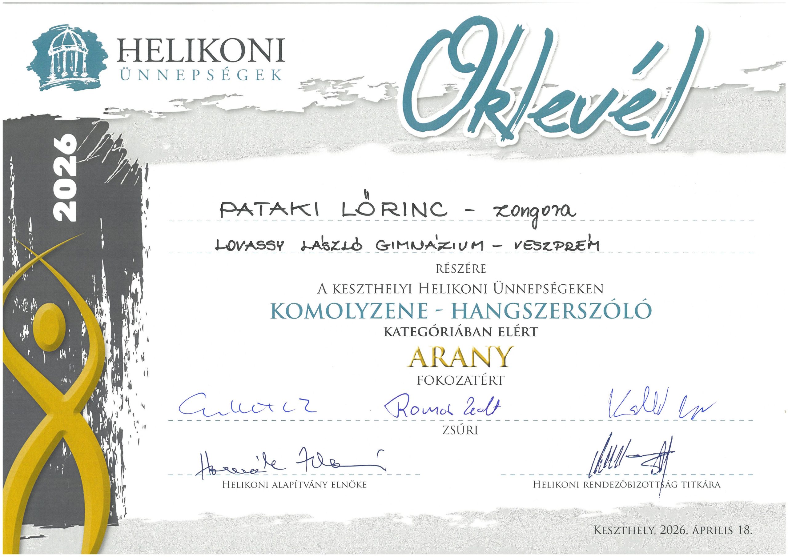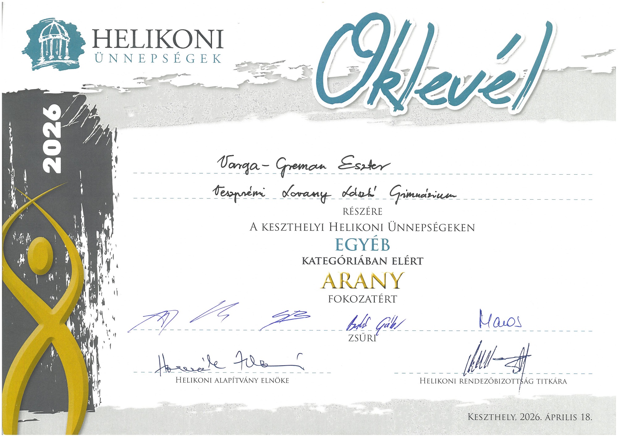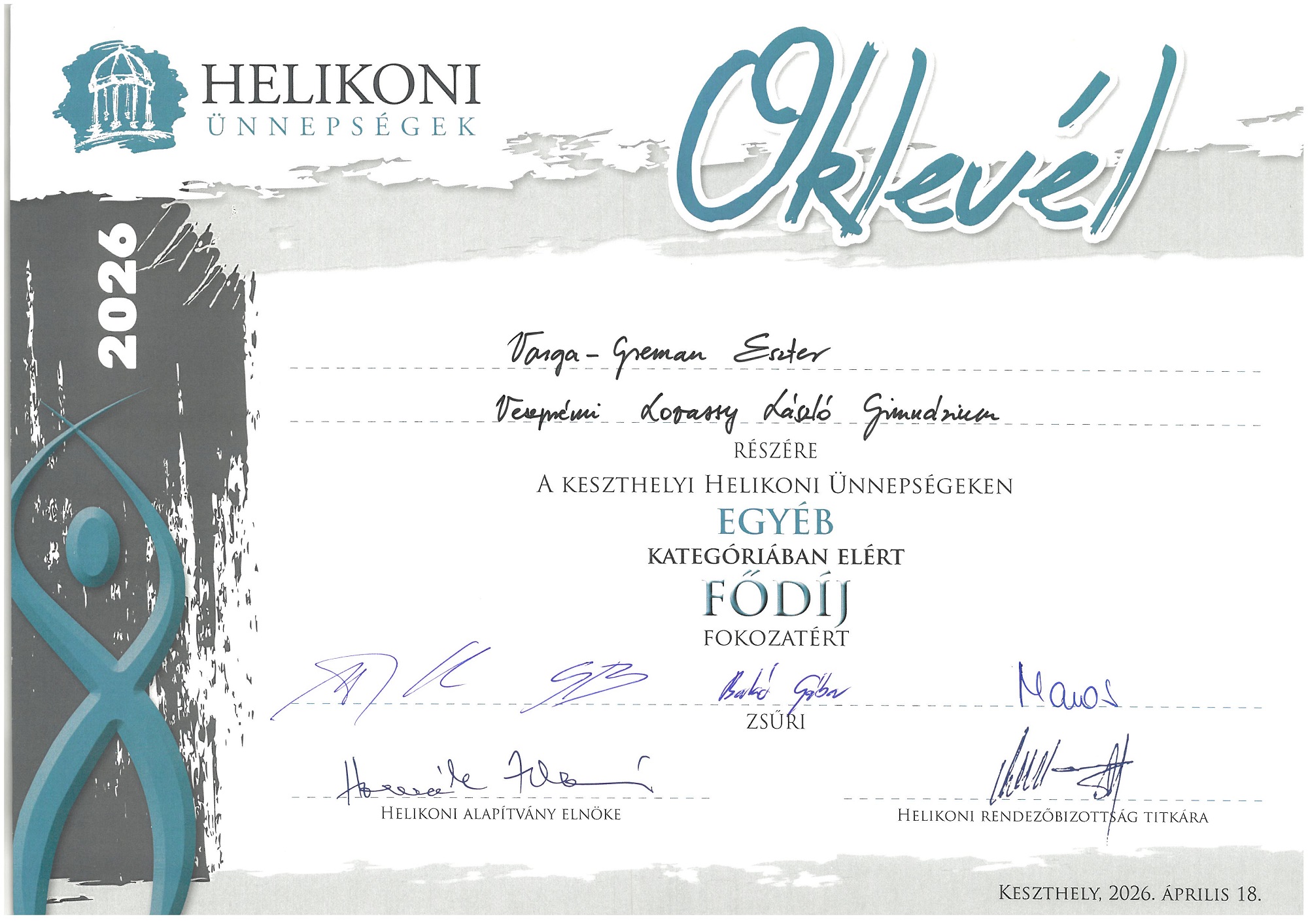 Iskolánk a 2026. évi Helikoni ünnepségeken is 80 fős csapattal vett részt. A Női kar, modern tán csoport és az Néptánc duó kategóriát kivéve minden kategóriában neveztünk, s nagyon szép eredmények születtek.