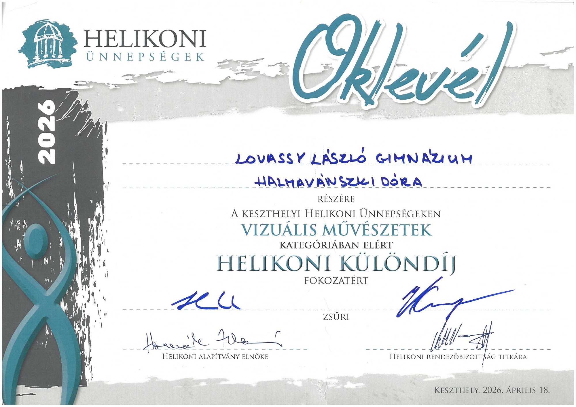 Vizuális művészetek kategória különdíj